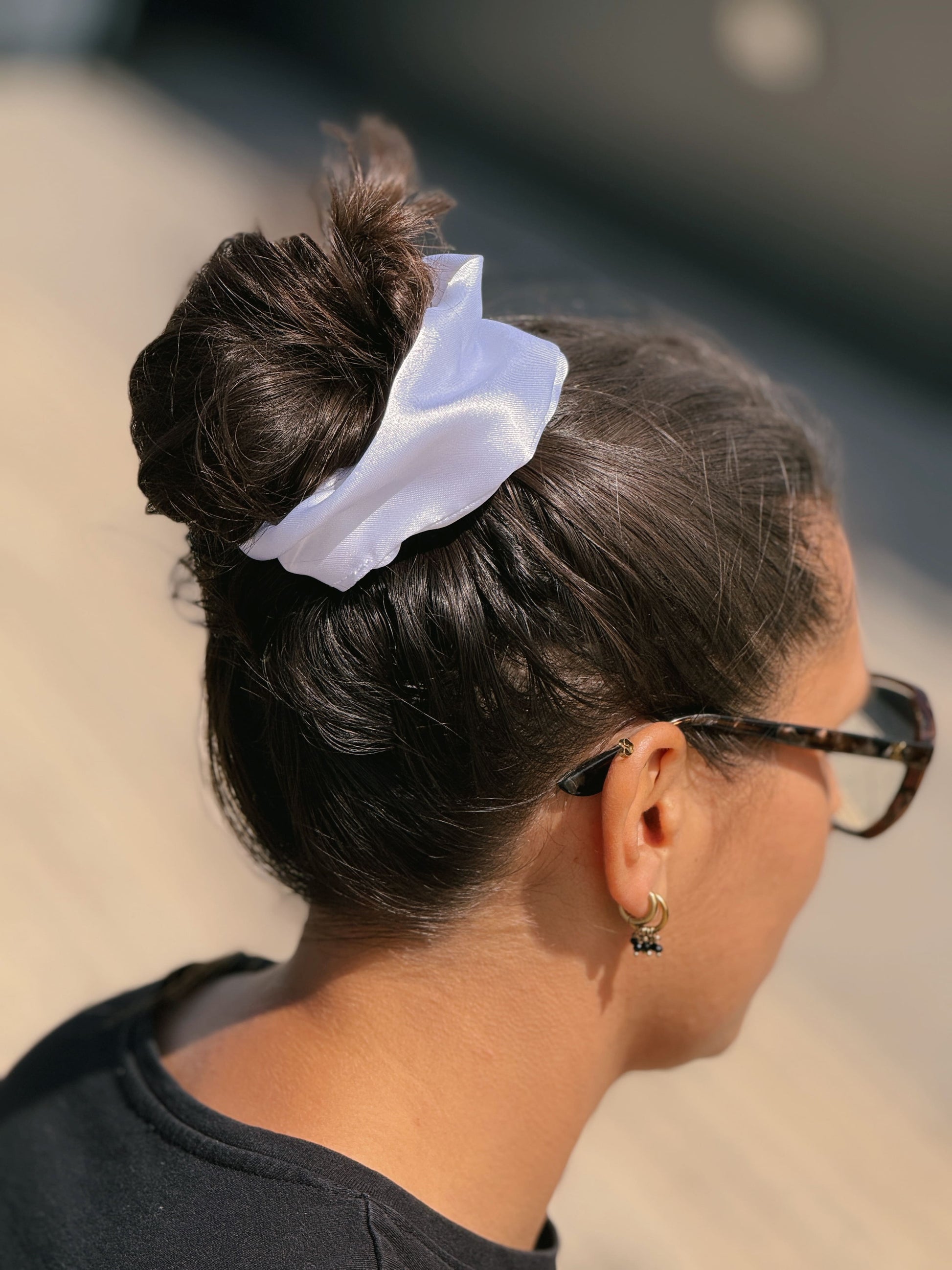 Le chouchou Maxi l’Envolée Blanc apporte volume et style à vos coiffures. Sa matière satinée confère douceur et brillance, tout en protégeant vos cheveux.